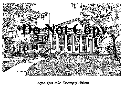 5Prints of ink drawings by Jack Andrews, of fraternities, sororities, and other buildings at the University of Alabama Kappa Alpha Order.
