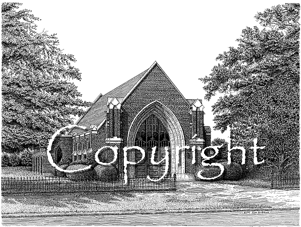 Mike Andrews' "First Presbyterian's Warner Chapel" From an Original Ink Drawing.